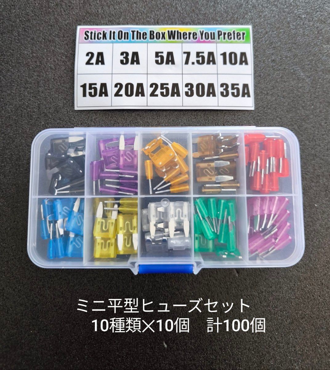 ・100個入り・10種類の容量(2A・3A・5A・7.5A・10A・15A・20A・25A・30A・35A 各10個)